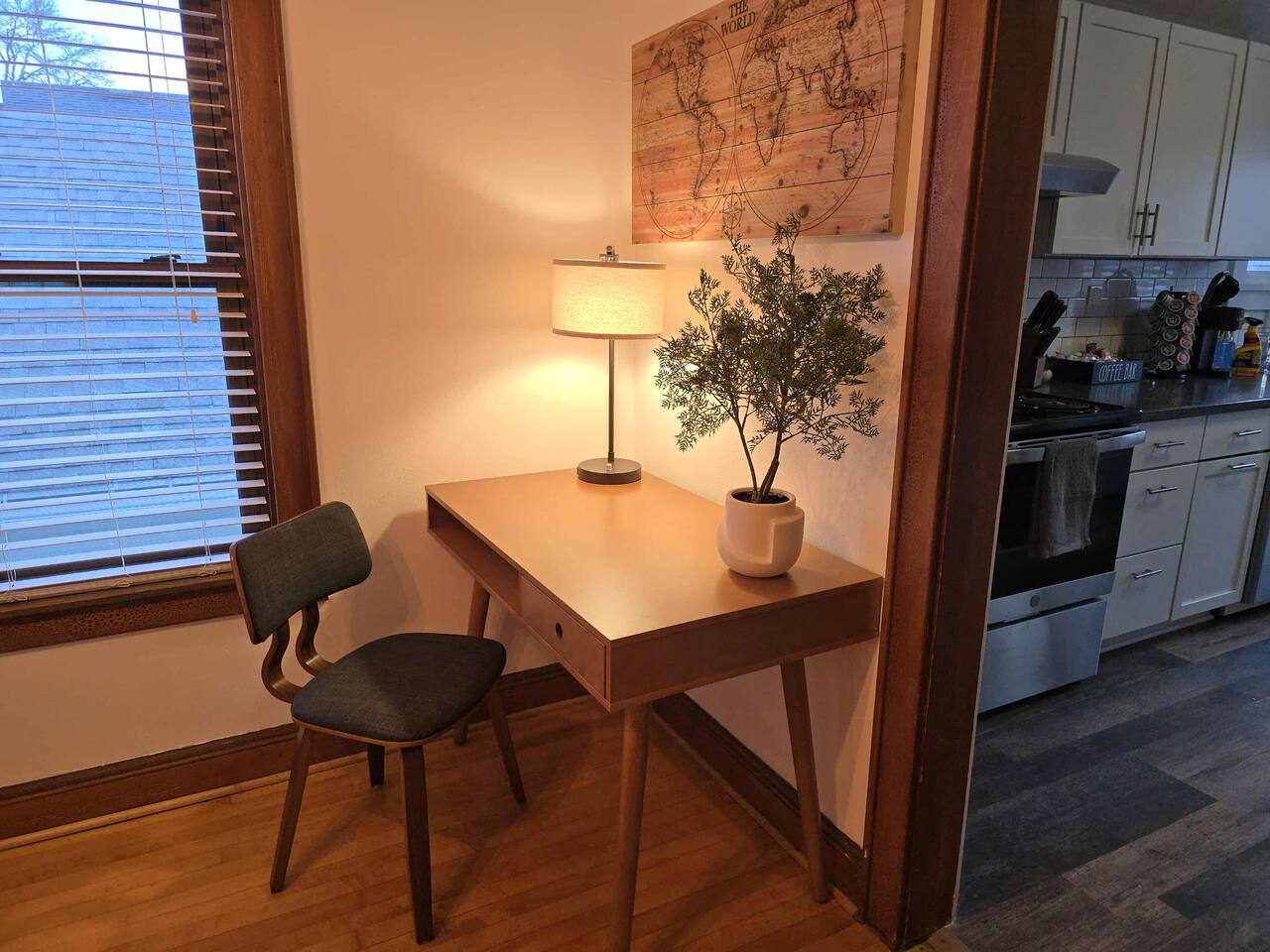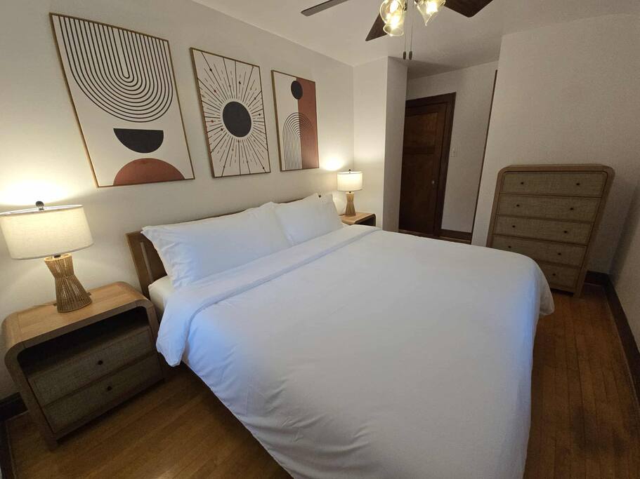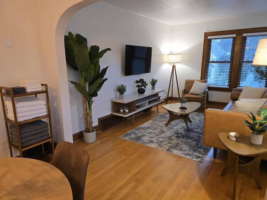 Perfectly situated in the vibrant heart of Bay View, this stylish apartment is your ideal home base for exploring Milwaukee. Step inside to discover a thoughtfully designed space blending mid-century charm with modern comfort. Enjoy a fully remodeled kitchen and bathroom, featuring stainless steel appliances, a luxurious rainfall shower, and two plush king beds for a restful night’s sleep. Whether you’re here for a weekend getaway, a local event, or an extended stay, you’ll find everything you need for a comfortable, stylish, and memorable Milwaukee experience. Cook with confidence in the fully equipped kitchen stocked with all the essentials for anything from a quick snack to a gourmet meal. The refinished original hardwood floors, dedicated workspace, and thoughtful touches throughout create a warm, functional atmosphere perfect for both work and relaxation. Enjoy modern amenities including a washer and dryer, USB charging ports, and high-speed Wi-Fi. Step outside and immerse yourself in Bay View’s lively local scene — just minutes from South Shore & Humboldt Park’s Beer Gardens, and the Oak Leaf Trail. Walk to local favorites like The Vanguard, Honeypie, Burnhearts, LuLu Café, Goodkind, and Centraal. Cap off your evening with a drink at 1840 Brewing Co., Twisted Path Distillery, or the retro-chic At Random cocktail bar. With a prime location less than 10 minutes from both the airport and downtown Milwaukee, this home offers the perfect blend of style, convenience, and local flavor.