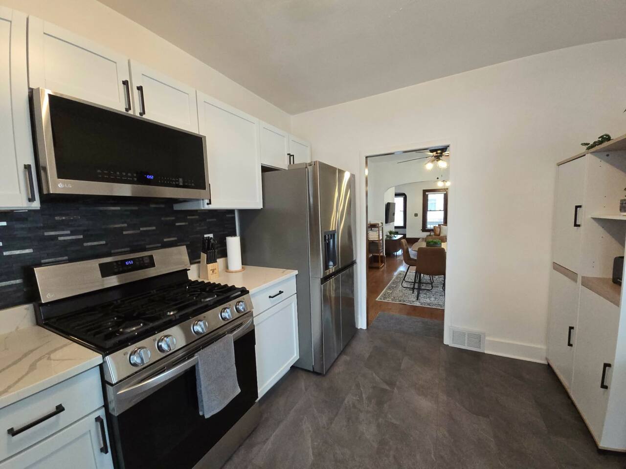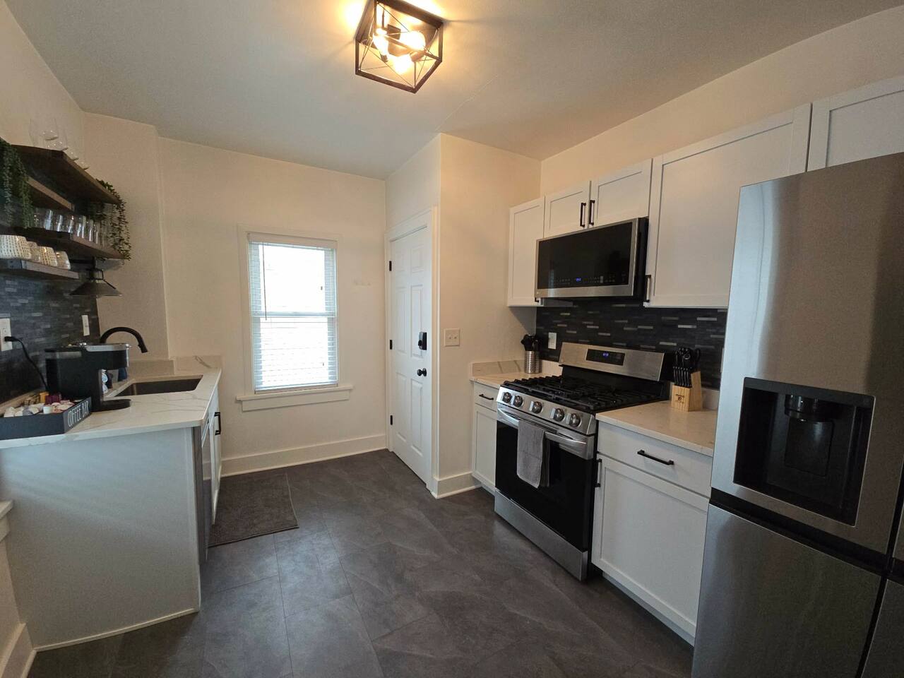 Perfectly situated in the vibrant heart of Bay View, this stylish apartment is your ideal home base for exploring Milwaukee. Step inside to discover a thoughtfully designed space blending mid-century charm with modern comfort. Enjoy a fully remodeled kitchen and bathroom, featuring stainless steel appliances, along with 1 king and 1 queen bed for a restful night’s sleep. Whether you’re here for a weekend getaway, a local event, or an extended stay, you’ll find everything you need for a comfortable, stylish, and memorable Milwaukee experience. Cook with confidence in the fully equipped kitchen stocked with all the essentials for anything from a quick snack to a gourmet meal. The refinished original hardwood floors, dedicated workspace, and thoughtful touches throughout create a warm, functional atmosphere perfect for both work and relaxation. Enjoy modern amenities including a washer and dryer, USB charging ports, and high-speed Wi-Fi. Step outside and immerse yourself in Bay View’s lively local scene — just minutes from South Shore & Humboldt Park’s Beer Gardens, and the Oak Leaf Trail. Walk to local favorites like The Vanguard, Honeypie, Burnhearts, LuLu Café, Goodkind, and Centraal. Cap off your evening with a drink at 1840 Brewing Co., Twisted Path Distillery, or the retro-chic At Random cocktail bar. With a prime location less than 10 minutes from both the airport and downtown Milwaukee, this home offers the perfect blend of style, convenience, and local flavor.